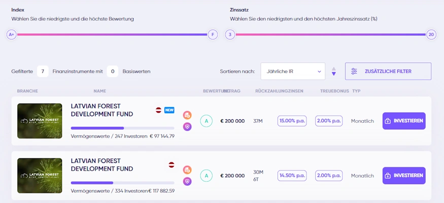 - Durch das Marktplatz-Konzept kannst du dein Investment über viele verschiedene Länder und Unternehmen über einen einzigen Zugangspunkt streuen.