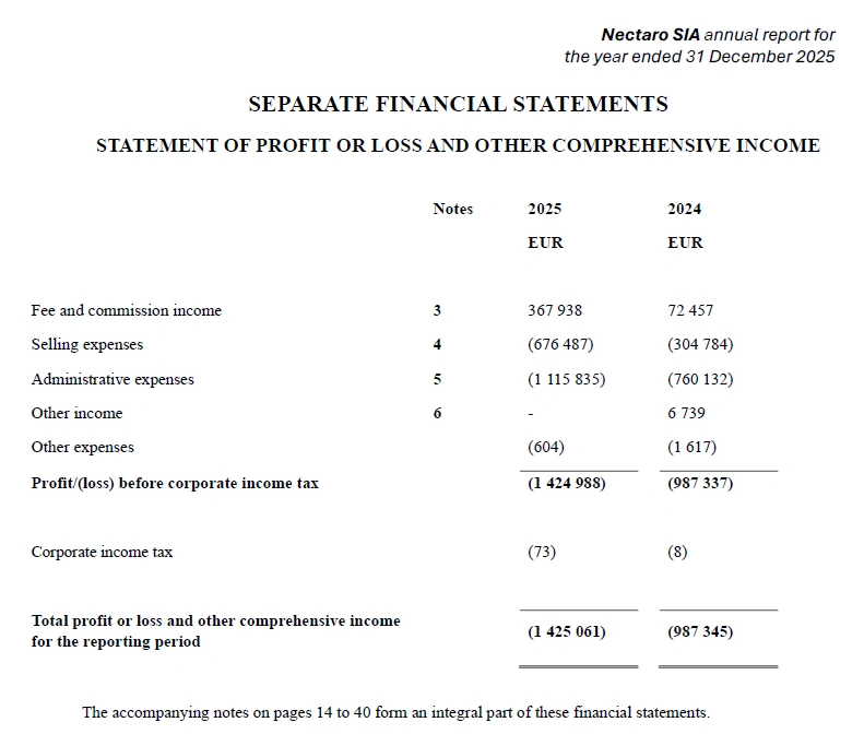 Nectaro ist 2025 stark gewachsen. Rund 19,5 Mio. EUR Portfoliovolumen, ~10.000 Investoren, 0% Ausfallrate seit Launch. Das klingt gut, aber die Plattform verbrennt noch erheblich Geld! Verlust 2025 von 1,4 Mio. EUR bei nur 368k EUR Umsatz. Das Überleben hängt vollständig von Kapitalspritzen der Muttergesellschaft Dyninno ab, ohne deren Unterstützung wäre die Fortführung fraglich.