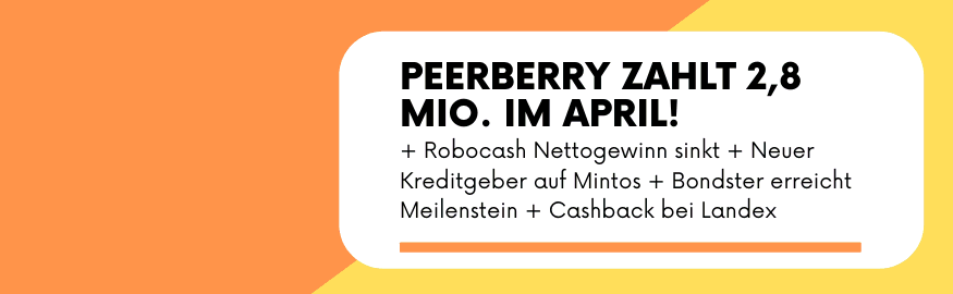 Willkommen zu den P2P Kredite News aus der KW 16 2022 mit den neuesten Nachrichten aus der Welt der P2P Plattformen. Heute sprechen wir über die PeerBerry Ukraine & Russland Rückzahlungen, den Robocash Quartalsbericht Q1 2022, einen neuen Kreditgeber mit erweiterten Sicherheiten auf Mintos, eine neue Bestmarke auf Bondster und über das neue Cashback System auf Landex für alle Investoren.