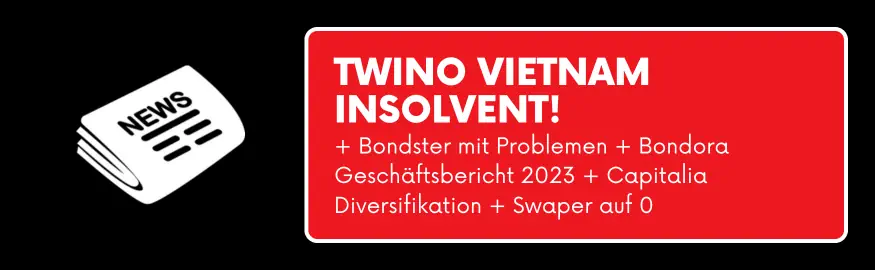 Willkommen zu den neuen P2P Kredite News aus der Welt der P2P Plattformen. Heute sprechen wir über die Insolvenz von TWINO Vietnam, den Abwärtstrend von Bondster, die Geschäftsergebnisse 2023 von Bondora, die richtige Diversifikation auf Capitalia und die Beendigung meines Investments auf Swaper.