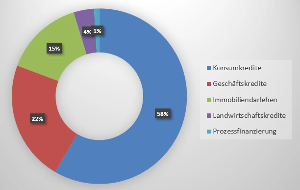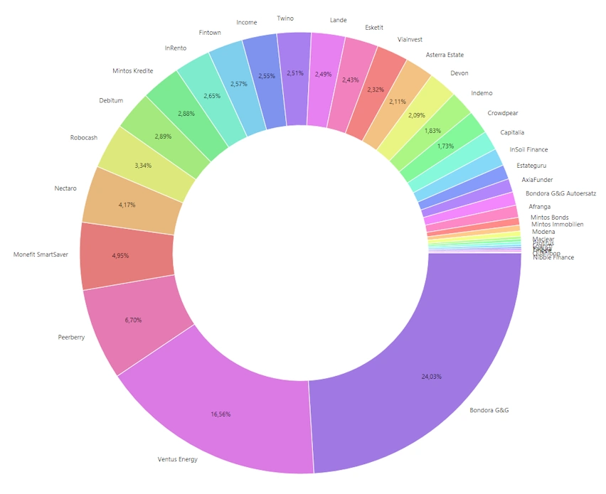 Konsumkredite sind weiter die treibende Kraft, haben jedoch erneut Prozentpunkte eingebüßt. Grund dafür ist maßgeblich die Aufstockung von Ventus Energy auf 100.000 EUR gewesen. Ich verfolge hier jedoch keine spezielle Aufteilung.