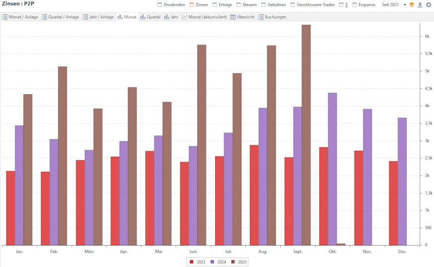 Mit den Ausschüttungen die mir das P2P Portfolio aktuell bietet, sollte das im vierten Quartal möglich sein oder spätestens im ersten Quartal 2026. Dann hätte ich keine Plattform mehr unter dieser Marke im Portfolio und bei fast allen werden dann auch regelmäßig Gelder abgezogen, um einerseits dynamischer umschichten zu können und andererseits die Möglichkeit zu vermindern, größere Verluste zu erleiden.