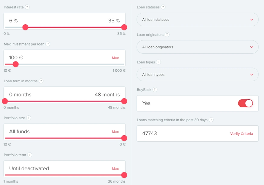 Nach der Anmeldung auf der Plattform kannst du damit beginnen, in P2P Kredite zu investieren. Dies kannst du sowohl manuell als auch automatisiert tun. Jedoch sind praktisch niemals Kredite vorhanden, in die manuell investiert werden kann, da der Großteil der Investoren automatisiert investiert und der Markt meist immer leergekauft ist.